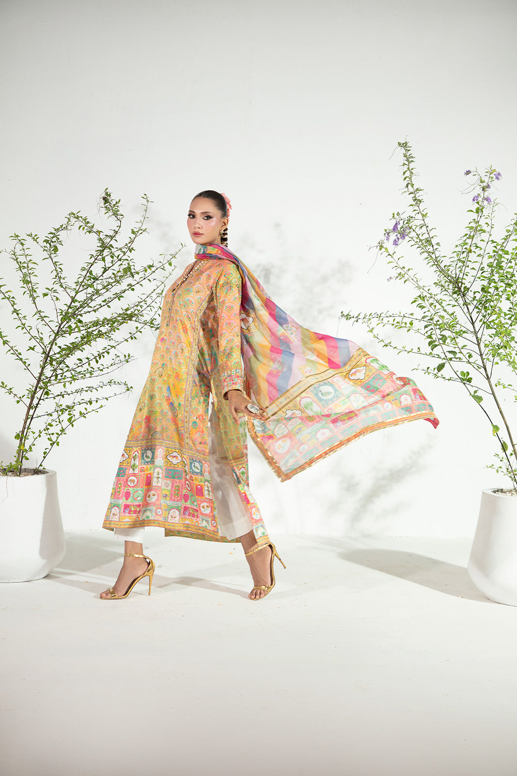 - Dupatta: Printed Cotton Net