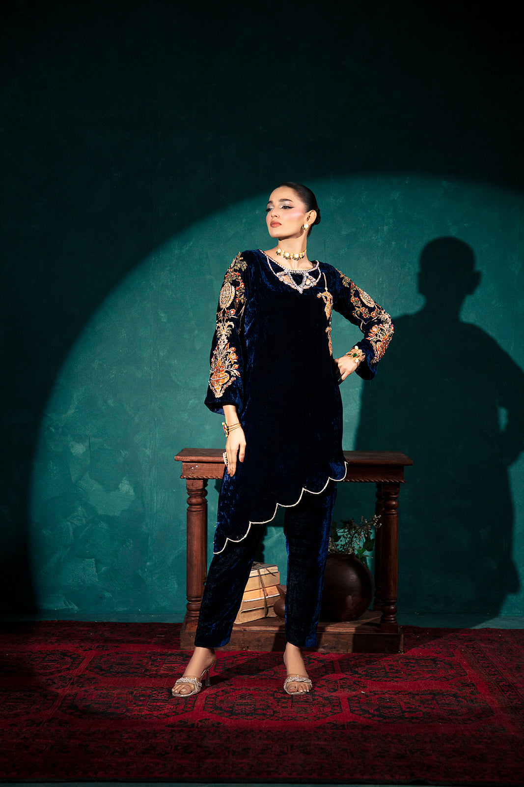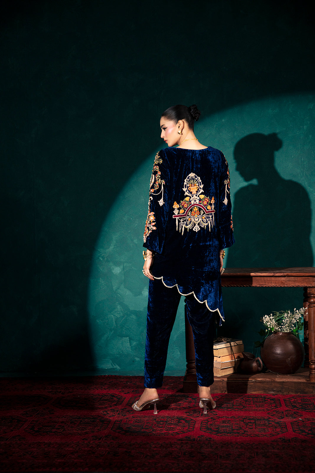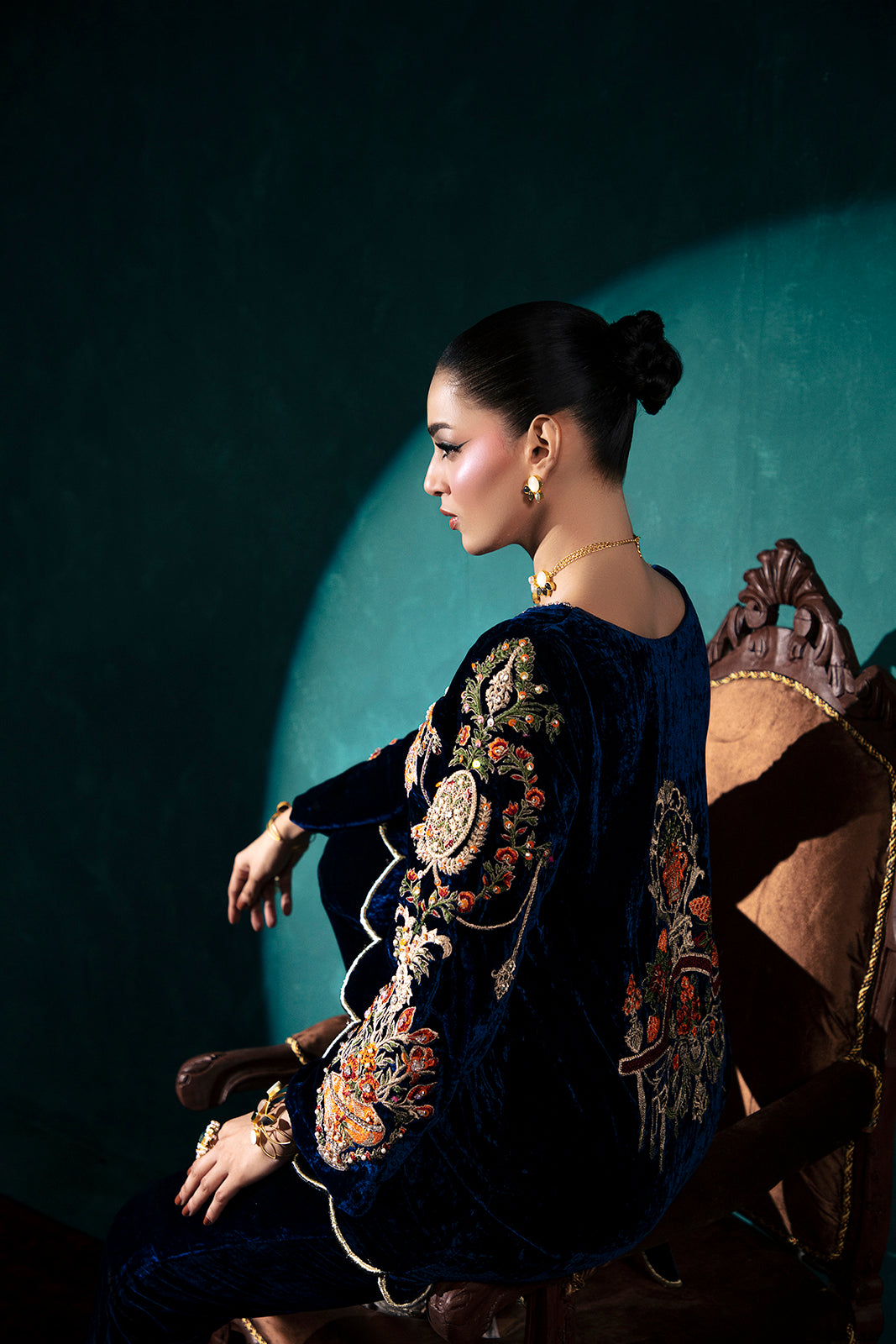 Neckline exquisitely hand-embroidered with crystals, kora, and delicate French knots. Sleeves are meticulously hand-embellished, while the cutwork daman is adorned with intricate tilla work. The back features a beautifully embroidered patch, completing this statement piece with refined artistry.